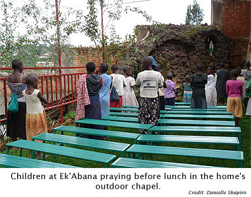 Ek'Abana opened its doors in 2002 with nine children, said Dieudonne Muhanano, the home's receptionist and staff member charged with speaking to the media. All the children living at the home receive religious teaching and some counseling. They all attend school and, even after leaving the home, Ek'Abana continues to cover their school fees.