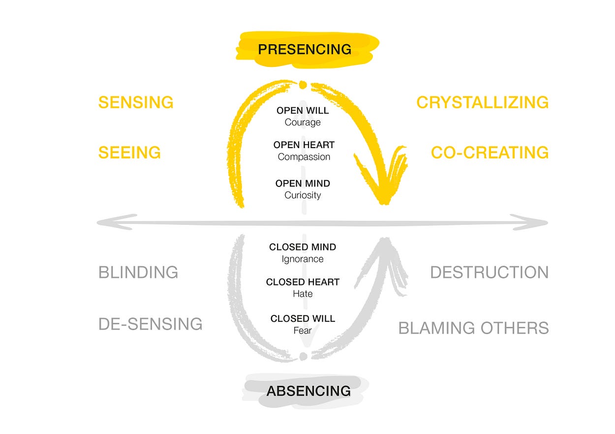 If you are interested in further exploring these ideas, join our monthly conversation series Dialogues on Transforming Society and Self (DoTS), or find us on www.presencing.org and www.ottoscharmer.com.