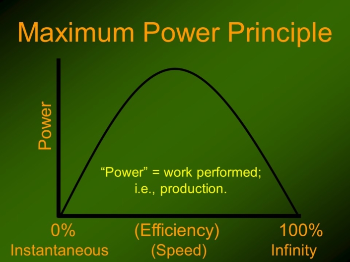 In ecology, the maximum power principle is that, in the sense of natural selection, more “fit” organisms are those that acquire higher rates of energy consumption from their environment. (For non-ecologists, “fitness” redounds to the ability to survive and reproduce.) Now assume that more reproductive economies better propagate their technologies and organizational characteristics just like more fit biological organisms better propagate their genes. Pursuant to the maximum power principle, then, the economy that accesses more energy, and transforms it more efficiently into new structures, is more fit to survive and propagate its narratives.
