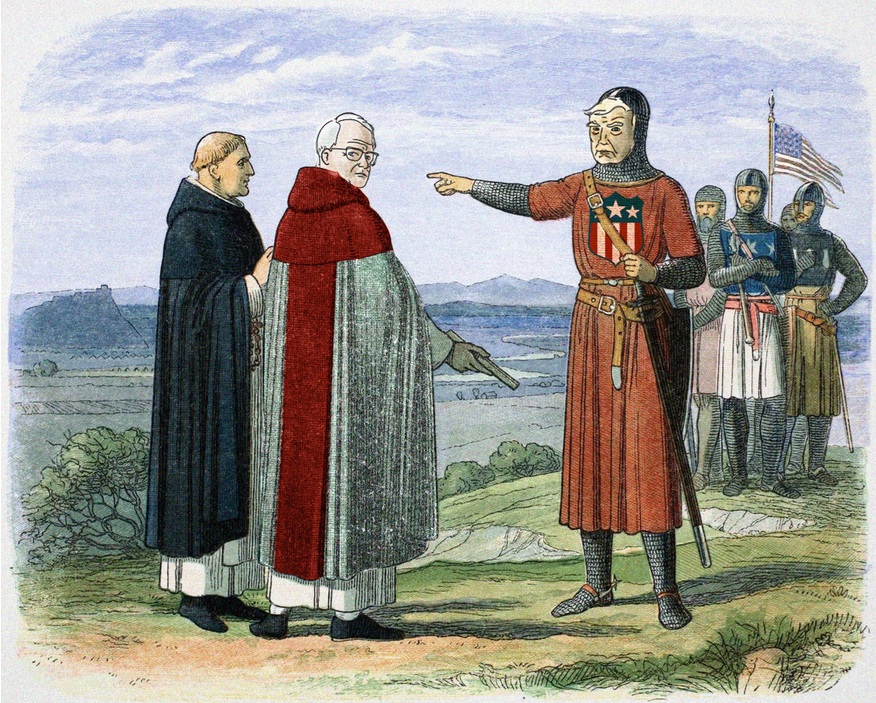 This conflict (which Wikipedia editors have rushed to dub the “2026 United States – Holy See rift”) is enrapturing because it features everything from the boilerplate (pope decries war) to the macabre (Pete Hegseth’s imprecatory prayers), from the too-good-to-be-true (Avignon captivity threats at the Pentagon) to the bizarre (the AI Jesus image). As with most phenomena involving a two-thousand-year-old church, this kind of rift has many precedents. We could turn to fourteenth-century France, when King Philip IV threatened fellow megalomaniac Boniface VIII with accusations that make Trump’s social media posts look polite (Philip charged that pope with sorcery, sodomy, and literally cavorting with demons. None of these accusations were proven in the court of law). We could even turn to the eleventh century and examine the dueling hierocratic claims of Gregory VII and the Holy Roman Emperor Henry IV, who was famously released from papal excommunication only after kneeling barefoot in the snowy Apennines.